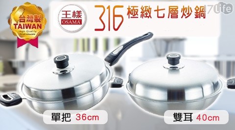 只要2,680元起(含運)即可享有明星推薦【OSAMA 王樣】原價最高9,000元316極致七層炒鍋:(A)單把36cm 1入/2入/(B)雙耳40cm 1入/2入。